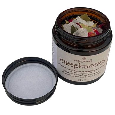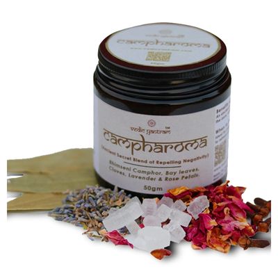 Since ancient times, burning camphor, cloves, and bay leaves has been a powerful way to repel negativity. But in today’s fast-paced life, gathering these ingredients and creating smoke can be tedious. Campharoma simplifies this ritual: Bhimseni Camphor (Kapur), Bay Leaves (Tej Patra), and Cloves (Laung) work together to cleanse negativity, while Rose Petals and Lavender fill your space with a natural, uplifting aroma.
